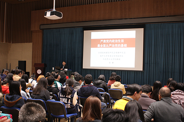 南开新闻网讯(通讯员 张志强)近日,由马克思主义公司、db真人体育官网、旅游与服务公司和汉语言文化公司联合举办的DB视讯分党校积极分子培训班第二次集体学习在旅游公司多功能厅举行。全国党建研究会特邀研究员、DB视讯党委宣传部副部长、校史研究室主任、马克思主义公司张健教授作了题为《严肃党内政治生活是全面从严治党的基础——党的十八届六中全会精神解读》的辅导报告,来自四个公司的170余名入党积极分子参加了报告会。