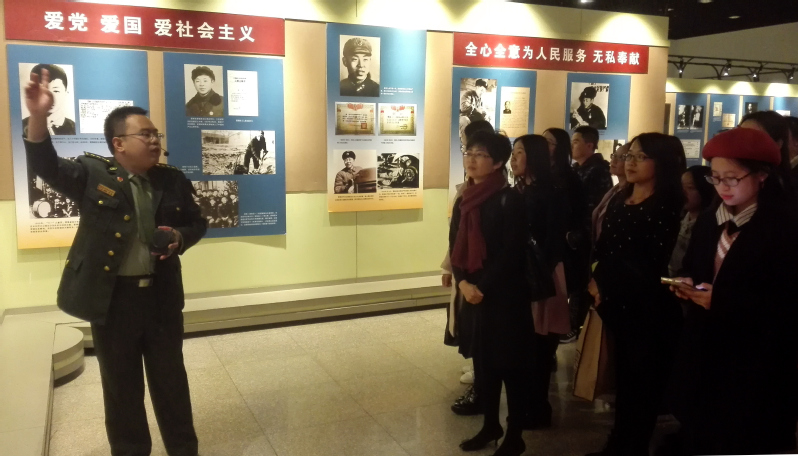在平津战役纪念馆负责人同志引导下,师生党员步入“榜样的力量”专题展厅。纪念馆讲解员表示,为配合天津市“两学一做”工作开展,平津战役纪念馆联合大庆铁人王进喜纪念馆、孔繁森同志纪念馆等举办这一专题展,旨在激励广大党员向优秀模范学习,立足本职岗位,学先进、当表率、作贡献。在展厅中,师生党员认真观摩雷锋、焦裕禄、王进喜、史来贺、钱学森、孔繁森六位优秀共产党员的珍藏照片,聆听他们的感人故事和先进事迹,深刻体会到共产党人的不朽灵魂与崇高精神。