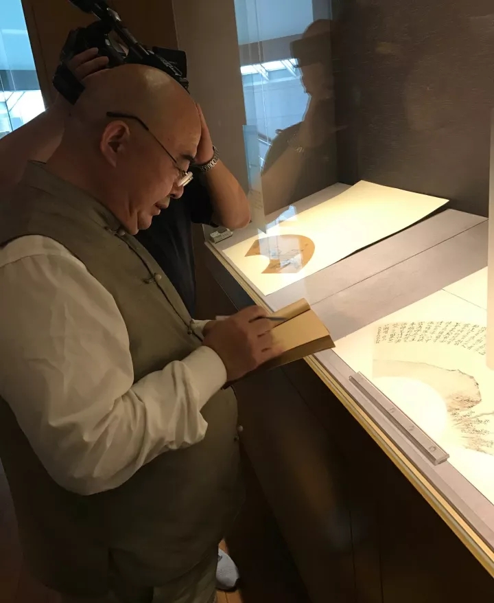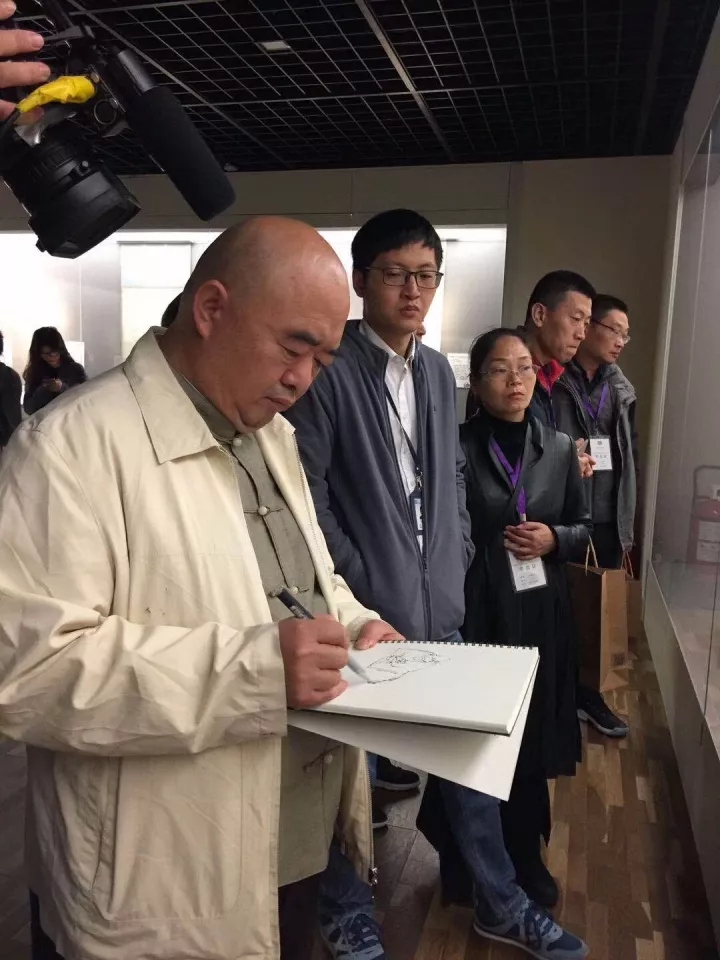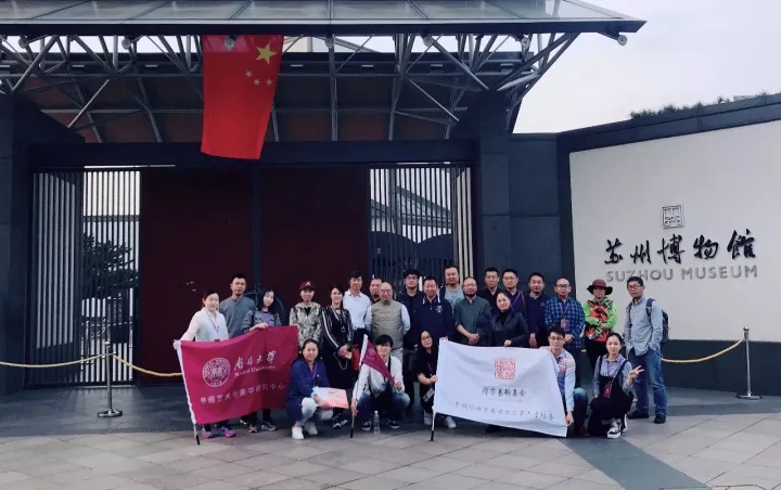 2017年10月18日下午,考察·写生团抵达苏州之后随即前往苏州博物馆参观“文人别派——苏州博物馆藏扬州八怪与海上画派合璧展”。“扬州八怪”与“海上画派”是“青藤白阳”之后“大写意”画风的继承者与开拓者,观看这次展览对于厘清“大写意”画风在明清与近现代的传承有着不言自明的意义。就扬州八怪与海上画派而言,二者在起源上有着相似的社会因素,在风格上二者也有着师承的渊源关系,可以窥见文人画派自清初以来逐渐走向多元流变的趋势。观看过程中,尹沧海教授边观看作品边勾勒速写稿,以言传身教的方式教导学员古为今用、借古开今的学习途径。