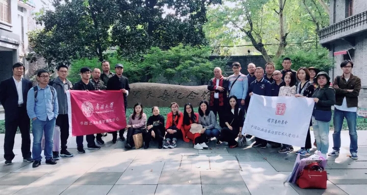 2017年10月16日下午,考察·写生团抵达南京。稍作休整之后,团队前往江苏省国画院参观。江苏省国画院坐落在南京城西清凉山麓石头城旁,有“四明山庄”的雅称,是新中国历史上最著名的画派之一——“新金陵画派”的发源地。学员观摩了“金陵风骨 其命惟新——江苏省国画院60年•典藏精品陈列展”,对于以傅抱石为代表的“新金陵画派”有了更进一步的认识。院内古木藤萝掩楼阁、茂林修竹簇回廊的景致也使学员初步领略的江南园林的典雅景致。