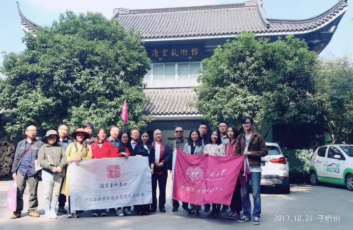 2017年10月21日上午,考察·写生团沿着西湖边的南山路一线依次参观了中国美术公司、潘天寿纪念馆、唐云艺术馆、浙江省美术馆等地,观摩了潘天寿的经典作品,“纪念钱君匋诞辰110周年:众美抱华——钱君匋的艺术世界”以及“先生归来——纪念经亨颐先生诞辰140周年特展”。进一步研究学习了近现代书画家的艺术风貌与治学之道。尹沧海教授对于部分作品进行了对比分析与解读。