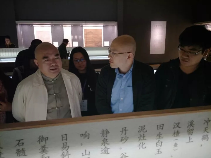 2017年10月17日上午,考察·写生团来到南京博物院,参观“青藤白阳——徐渭、陈淳书画艺术特展”、“无边诗境入画来——傅抱石古人诗意画展”以及“傲霜冷趣——陈之佛秋冬题材绘画展”。“青藤白阳——徐渭、陈淳书画艺术特展”是本次考察参观的重点,徐渭、陈淳的画作对于理解中国绘画意象造型中的“大写意”精神有着不可替代的意义。参观由南京博物院研究员庞鸥引导,他对于展览概况与部分作品进行了简要介绍,尹沧海教授则对于重点作品从技法、画风、思想等层面进行了详细解读、分析,使学员在观摩中逐步把握到中国绘画的写意性与写意精神之所在。参观过程中还偶遇了刘曦林教授,研讨了徐渭、陈淳生平、艺术风貌、后世影响等的问题。