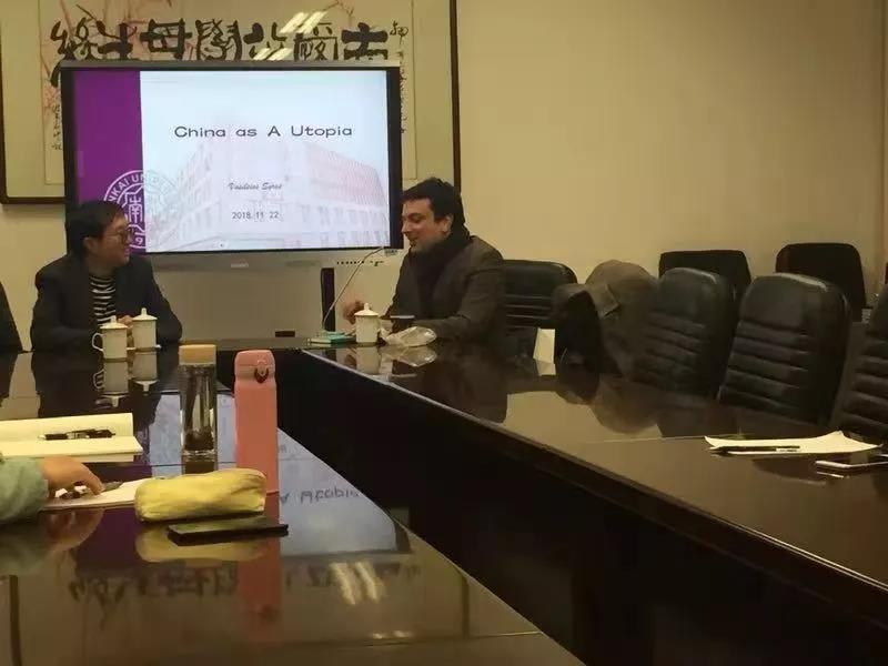 2018年11月22日,荷兰学者Vasileios Syros做客db真人体育官网,作以“作为乌托邦的中国”为主题的报告,会议在db真人体育官网317会议室举行。本次活动由中国哲学教研室副教授范广欣主持,在读博士、硕士研究生到场聆听。
