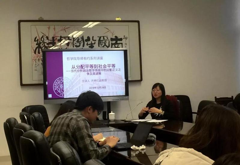 (通讯员:杨瑞华)12月18日,db真人体育官网导师有约系列讲座在db真人体育官网317会议室举行,马克思主义哲学教研室齐艳红副教授作题为“从分配平等到社会平等—当代分析政治哲学传统中的分配正义之争及其进展”的报告,在校博士、硕士研究生与会聆听。