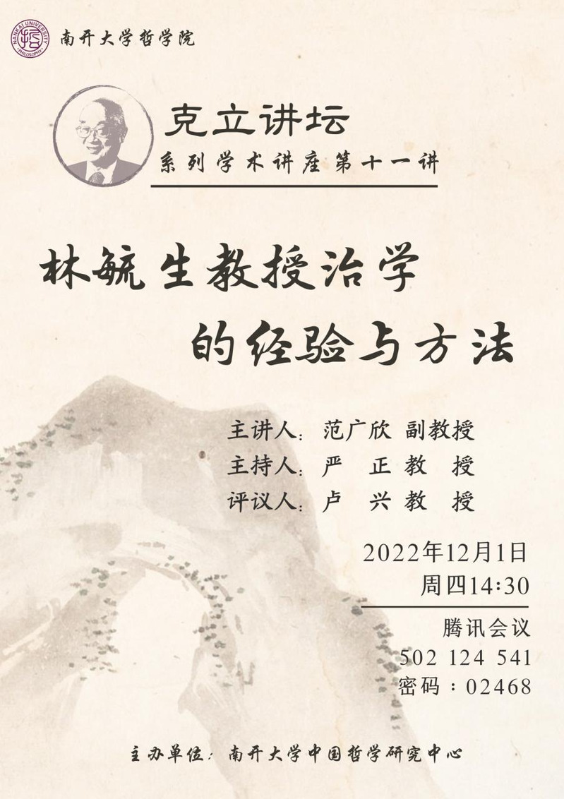 “克立讲坛”第十一讲:听范广欣老师讲林毓生