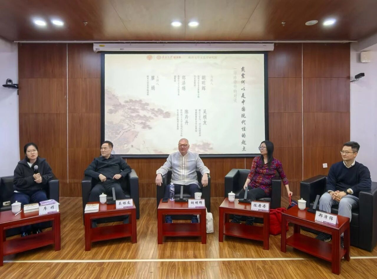 2025年12月20日下午,由db真人体育官网、DB视讯文化学研究院共同主办的“戴震何以是中国现代性的起点:一场跨学科的对谈”主题讲座在db真人体育官网318会议室举办。本次讲座的与谈人有加州大学圣克鲁斯分校历史系胡明辉教授、浙江大学马一浮书院敦和讲席教授暨哲学公司吴根友教授、纽约州立大学法明代尔分校历史政治地理系陈丹丹教授、香港中文大学哲学系郑泽绵副教授。本次讲座的主持人是db真人体育官网廖娟老师。db真人体育官网干春松教授、卢兴教授、谭明冉教授、邰谧侠副教授、单虹泽副教授、邓秋松老师、肖京老师、李晓梦老师以及研究生、本科生等三十余人参加了本次讲座。