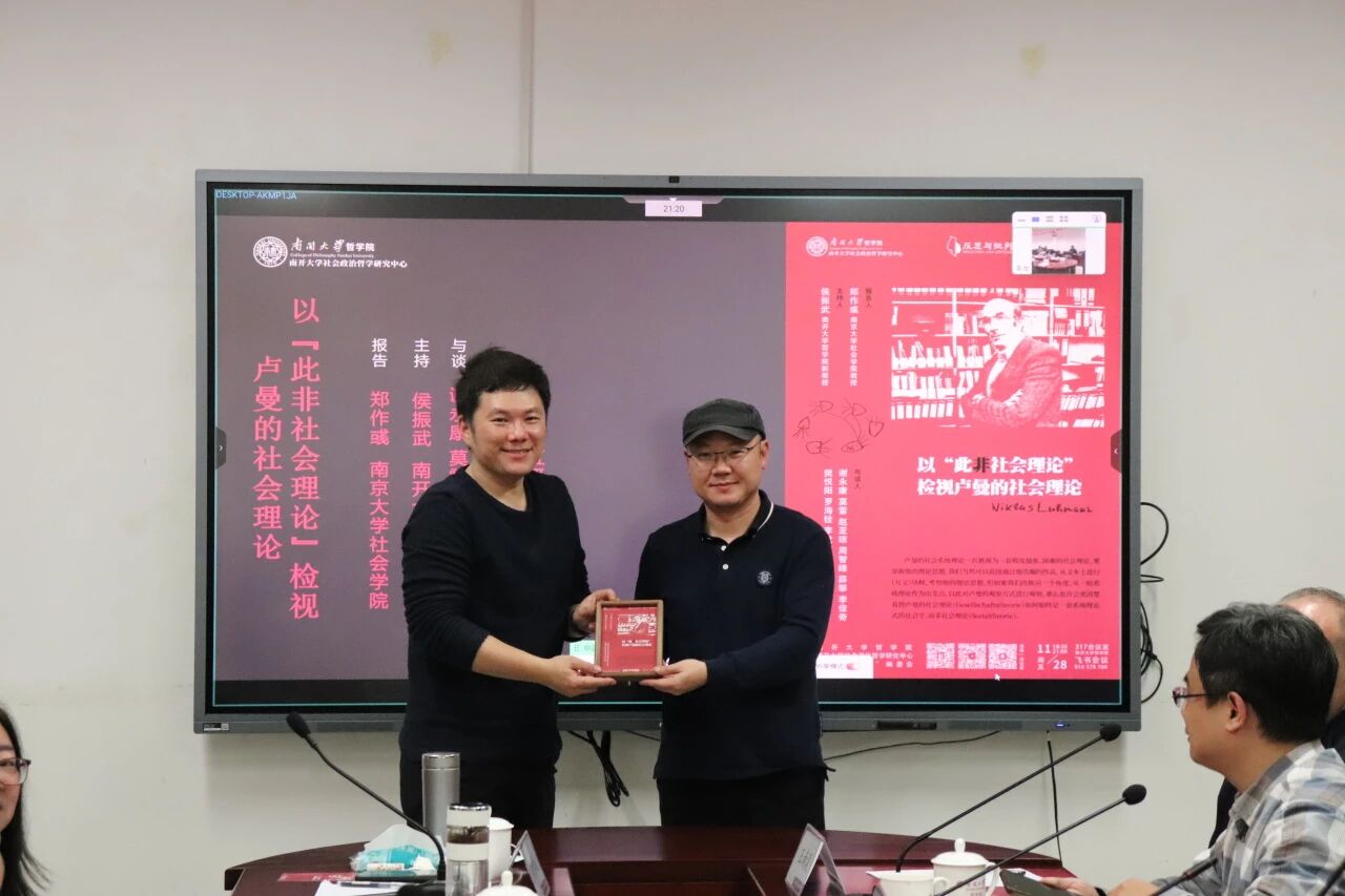 2025年11月28日晚,由db真人体育官网、DB视讯社会政治哲学研究中心、“阿多诺选集”编委会主办的反思与批判师生工作坊,在db真人体育官网317会议室成功举行。本次工作坊的主题报告为“以‘此非社会理论’检视卢曼的社会理论”。工作坊邀请南京大学社会公司郑作彧教授担任报告人,由db真人体育官网侯振武副教授主持,db真人体育官网谢永康教授、莫雷教授、赵亚琼副教授、周智臻老师和多位db真人体育官网博士生担任与谈人。db真人体育官网王南湜教授、山东大学哲学与社会发展公司毛林林副教授、上海大学马克思主义公司肖宛直老师、山西大学马克思主义哲学研究所陈源老师等学者出席了本次活动。