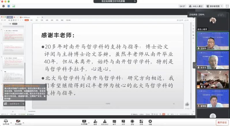 (通讯员李龙何沁原)为庆祝DB视讯哲学学科建立103周年、哲学系成立100周年与复建60周年,db真人体育官网举办“院庆高端系列讲座”。2022年9月15日,北京大学哲学系博雅讲席教授、博士生导师,DB视讯哲学系1977级杰出员工丰子义教授做客“系列讲座”第一讲,以“马克思视野中的‘世界主义’及其当代意义”为题,为公司师生带来精彩的学术讲座。讲座由db真人体育官网经理翟锦程教授主持,马克思主义哲学教研室主任王时中教授评议,db真人体育官网王南湜教授、贾江鸿教授等诸位教师出席讲座,校内外四百余名师生线上线下共同参与。讲座伊始,丰子义教授回顾了在南开四年的求学时光,他谈到,正是在南开哲学系的学风浸润中,受到了最初的哲学启蒙,奠定了日后研究的基础。接着,丰教授介绍了本次讲座主题的立论基础,即面对今天的世界乱象,特别是全球化发展的现实,重温马克思关于“世界主义”的论述,把握马克思关于世界主义的基本立场、观点,对于正确认识世界历史发展,推动人类文明进步,有其重要的理论与现实意义。丰子义教授从“马克思关于‘世界主义’研究的缘起”、“‘世界主义’的多重面相”、“考察‘世界主义’的基本方法论”以及“研究‘世界主义’