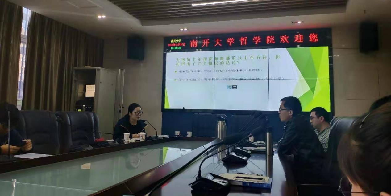 (通讯员 薛青青)2019年11月7日,db真人体育官网外哲研究生学术沙龙系列讲座(二期)的第三讲于db真人体育官网102举行,外国哲学专业博士生杨汲做了“有形的上帝—霍布斯的理论体系及对笛卡尔思想的挑战”的报告,外国哲学教研室教师郑辟瑞、伦理学教研室教师曹钦、魏犇群出席讲座,在读博士、硕士与会讨论。杨汲主要从三个方面论述霍布斯的观点——上帝是有形的:一是霍布斯对笛卡尔关于上帝存在证明的批判;二是霍布斯对笛卡尔关于上帝是无形实体的反驳;三是霍布斯对于“上帝是有形的”这一观点的一致论述。杨汲谈到,笛卡尔对上帝存在的证明包括因果论证和本体论论证:前者由动力因推出上帝存在;后者由具有上帝观念的我的存在来证明上帝存在。杨汲认为霍布斯是在唯物主义认识论的基础上,由否定上帝的观念进而否定笛卡尔上帝存在的证明,最后通过推理得出上帝存在。笛卡尔不仅认为上帝是存在的,而且还多次提及上帝是无形实体。在一般意义而言,实体=物体=有形体=物质。霍布斯认为即使我们对于上帝没有任何感知,上帝也是作为有形实体存在的。杨汲认为霍布斯通过诉诸于宇宙论说明这一论点,他并没有否定上帝是宇宙的一部分,并且他在文中并没有指出宇宙是一种有限的存在