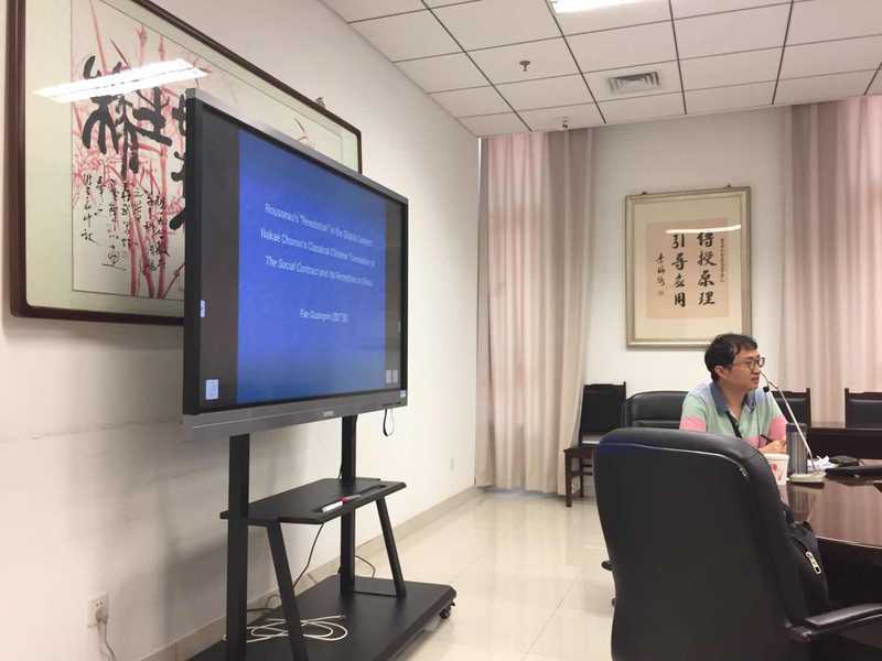 (通讯员:高萌)2019年5月17日,教师系列讲座第六讲在317教室举行。db真人体育官网教师范广欣做“Rousseau’s‘Revolution’intheGlobalContext:NakaeChomin’sClassicalChineseTranslationofTheSocialContractandItsReceptioninChina”主题报告。本次活动由db真人体育官网副经理贾江鸿老师主持,db真人体育官网教师曹钦与会,在读博士生、硕士生与会聆听。该报告是关于中国现代革命概念是如何通过卢梭的《社会契约论》的第一个中文译本产生的。自清末以来,卢梭的社会契约论一直被视为中国革命的福音。例如,最有影响力的汉译本作者何兆武认为,人民的革命权利是卢梭作品中心思想。然而,美国和英国的研究卢梭的主流学者一致认为,卢梭并不支持革命是作为解决社会和政治问题的有效方法。范广欣指出卢梭与革命之间的联系是有争议的,中国人对这种联系的看法源自于他们阅读卢梭的传统,这一传统始于1898年,当时《社会契约论》的第一个中文译本在上海出版。卢梭的《社会契约论》在19世纪80年代首次被翻译成中文,这是由日本儒士、法国归国职工N